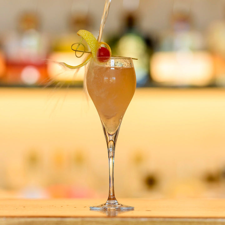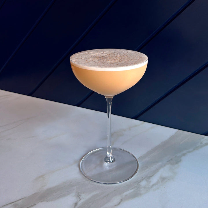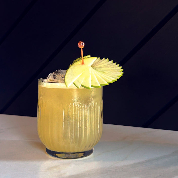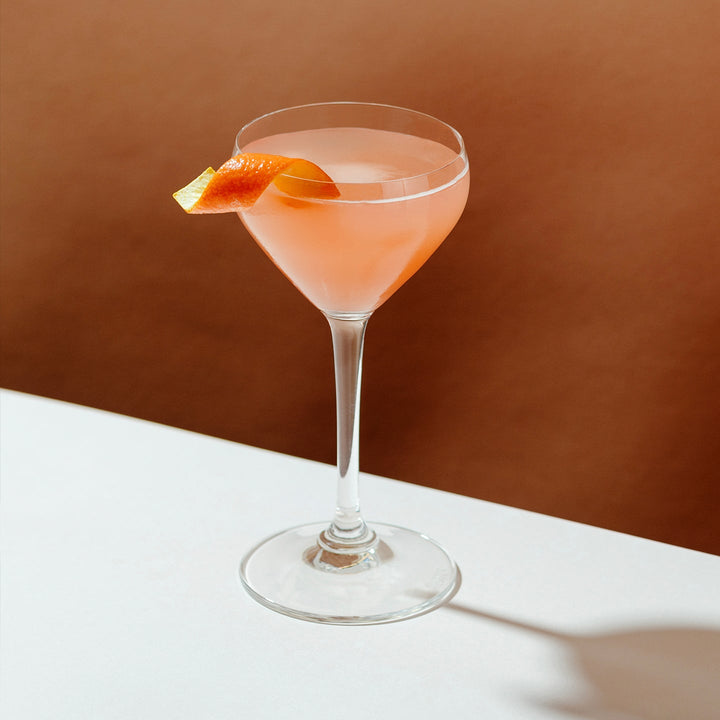 3. Double strain over ice and garnish with a lemon wedge.