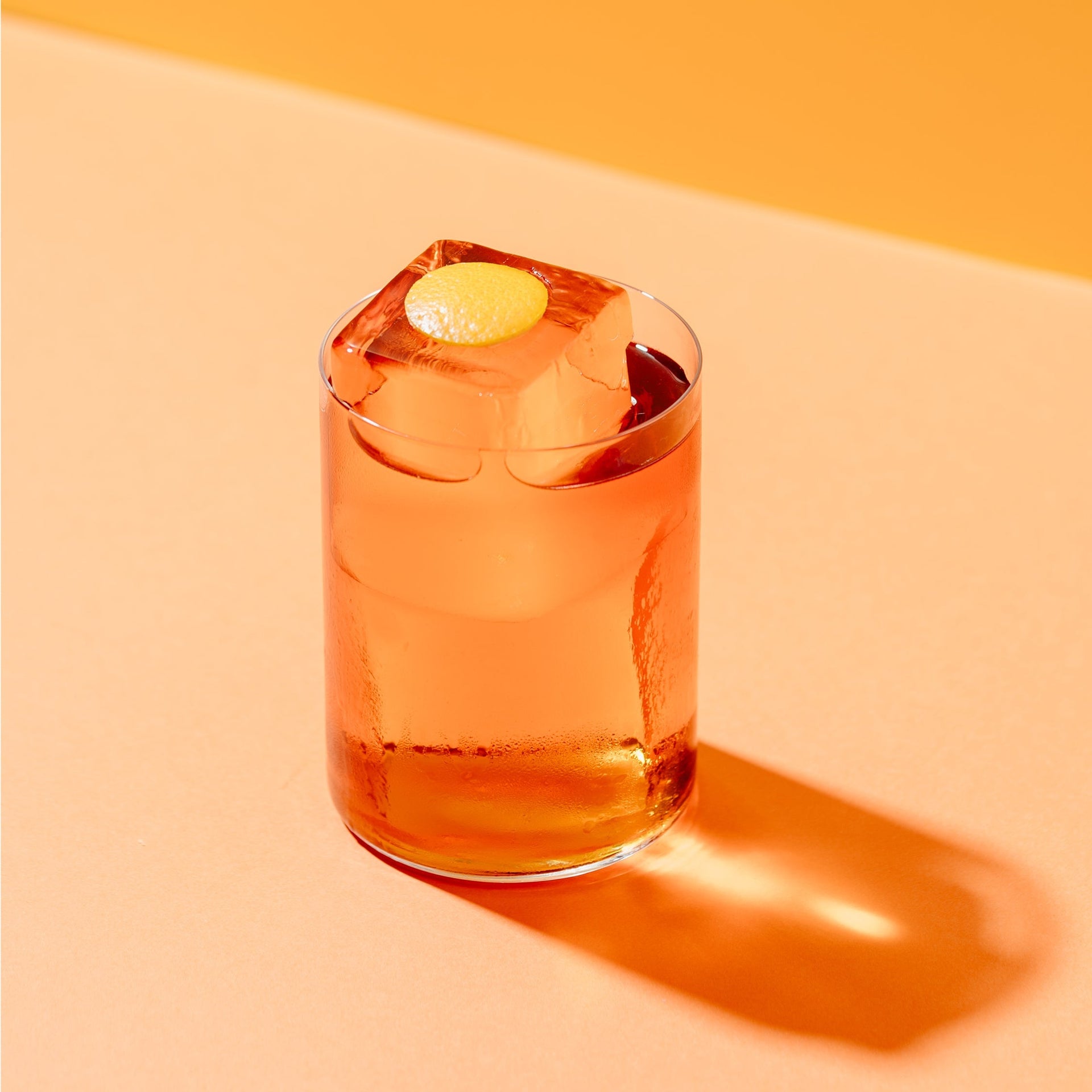 1. Add all ingredients to a rocks glass over a large ice cube.